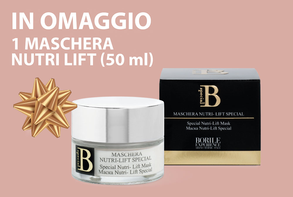 Die Nutri Lift Mask aus der Linie B Special ist eine cremige Emulsion mit Stärke und Puder, die Unreinheiten absorbieren. Das Vorhandensein von Shea-Butter und Hyaluronsäure trägt dazu bei, dass sich die Haut weich und seidig anfühlt, glättet die Gesichtszüge und verleiht ihr eine neue Ausstrahlung. Das pflanzliche Derivat Soja verleiht der Haut einen Lifting-Effekt und wirkt den Zeichen der Zeit entgegen.